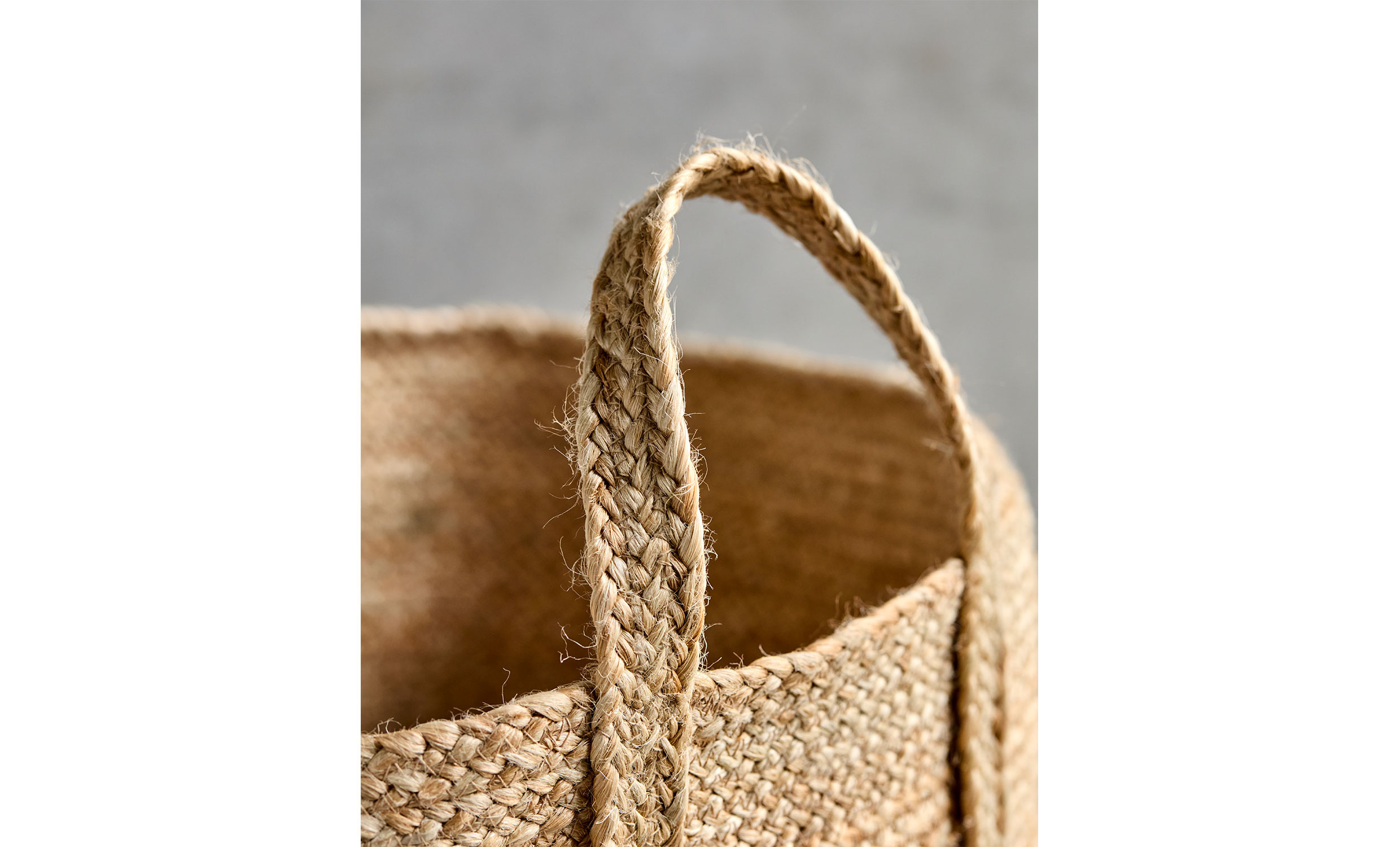 Dessa handgjorda förvaringskorgar i jute tillför både funktion och en mjuk, naturlig känsla till hemmet. Den runda formen och de synliga, integrerade handtagen ger korgarna ett modernt men tidlöst uttryck och gör dem enkla att använda i vardagen. Perfekta för förvaring av filtar, leksaker eller andra vardagsföremål – i hallen, sovrummet eller vardagsrummet.