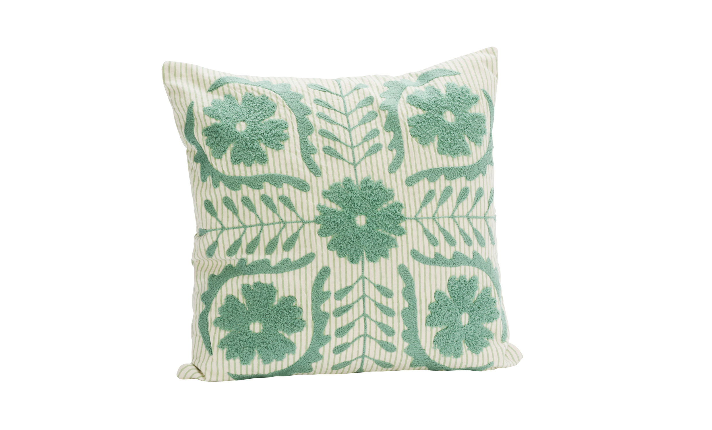 Detta kuddfodral med Suzani-inspirerat broderi är en hyllning till den persiska hantverkstraditionen. Toner av aquaturkos och vitt samspelar i tryckt bomull och dekorativa sömmar som skapar ett rikt och taktilt uttryck. Perfekt att ha i soffan eller sängen för en varm känsla med modern balans. Matchande bomullspläd finns i samma serie.