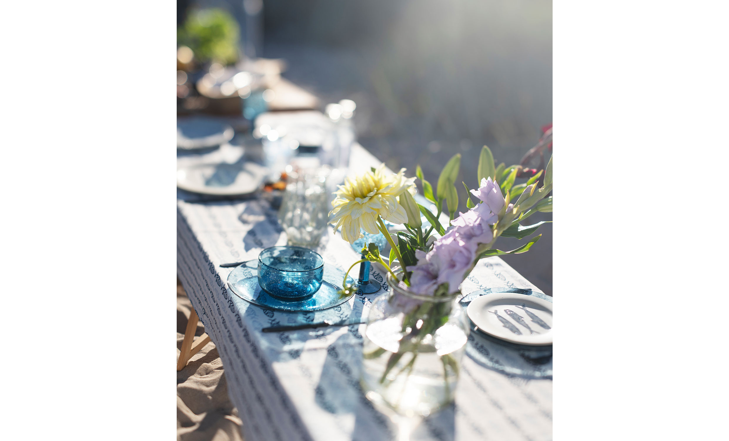 Denna tallrik i stengods kombinerar offwhite och blått i ett dekorativt motiv inspirerat av havet. Den robusta kvaliteten gör den tålig för daglig användning och särskilt passande för servering av fisk- och skaldjursrätter. Färgintensitet och nyans kan variera, vilket ger varje tallrik ett unikt uttryck. Matcha gärna med andra färger i serien för en levande och personlig dukning.