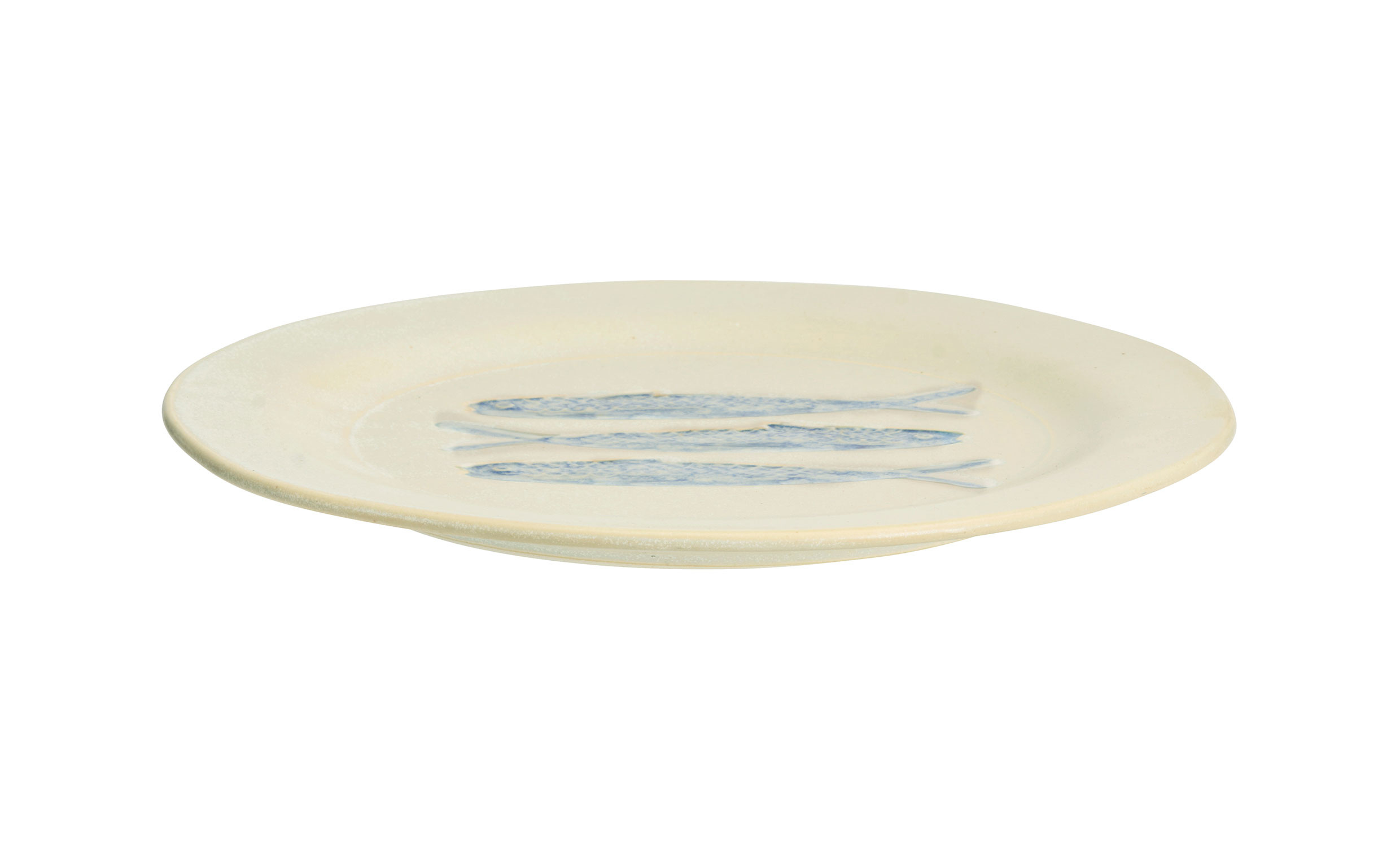 Denna tallrik i stengods kombinerar offwhite och blått i ett dekorativt motiv inspirerat av havet. Den robusta kvaliteten gör den tålig för daglig användning och särskilt passande för servering av fisk- och skaldjursrätter. Färgintensitet och nyans kan variera, vilket ger varje tallrik ett unikt uttryck. Matcha gärna med andra färger i serien för en levande och personlig dukning.
