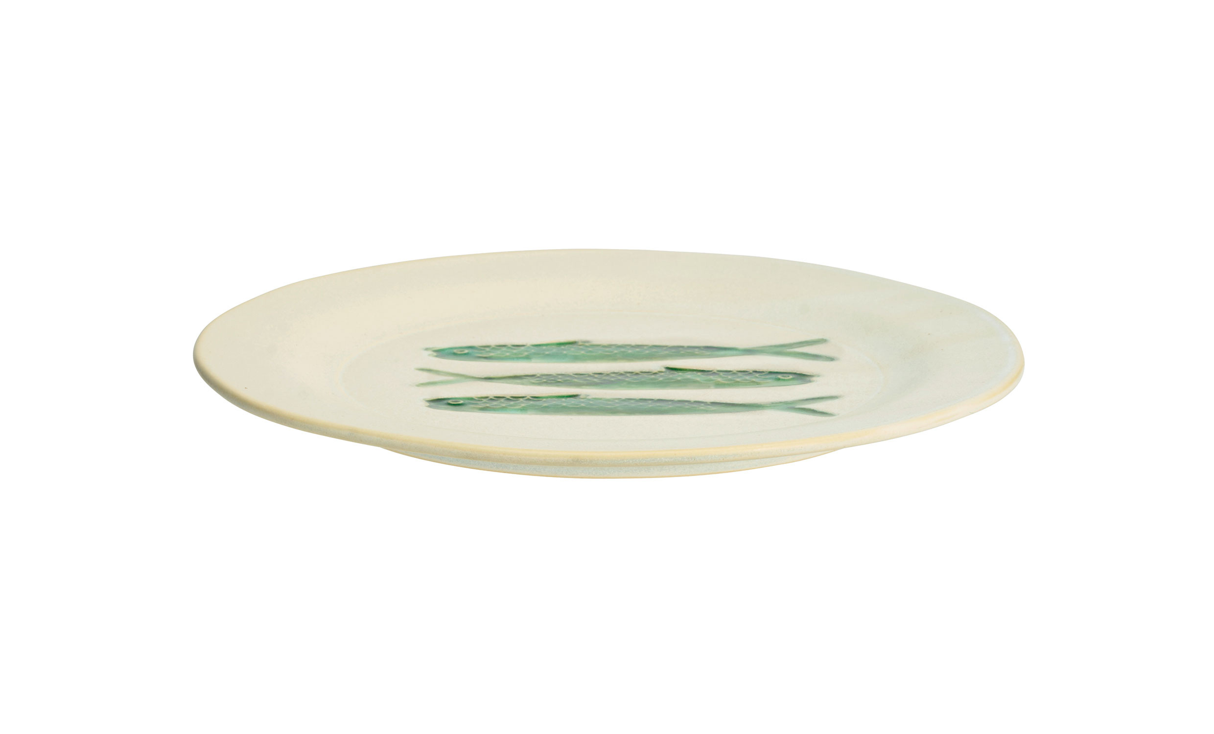 Denna tallrik i stengods kombinerar offwhite och grönt i ett dekorativt motiv inspirerat av havet. Den robusta kvaliteten gör den tålig för daglig användning och särskilt passande för servering av fisk- och skaldjursrätter. Färgintensitet och nyans kan variera, vilket ger varje tallrik ett unikt uttryck. Matcha gärna med andra färger i serien för en levande och personlig dukning.