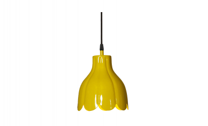 Tulippa är en dekorativ tak- och fönsterlampa i metall med en unik, handgjord design. Den blomliknande formen med mjukt vågade kanter ger ett elegant och lekfullt uttryck som tillför karaktär till rummet. Den högblanka ytan i varm gul ton, både invändigt och utvändigt, reflekterar ljuset på ett mjukt och behagligt sätt. Eftersom varje lampa är handgjord får den ett personligt och hantverksmässigt uttryck.