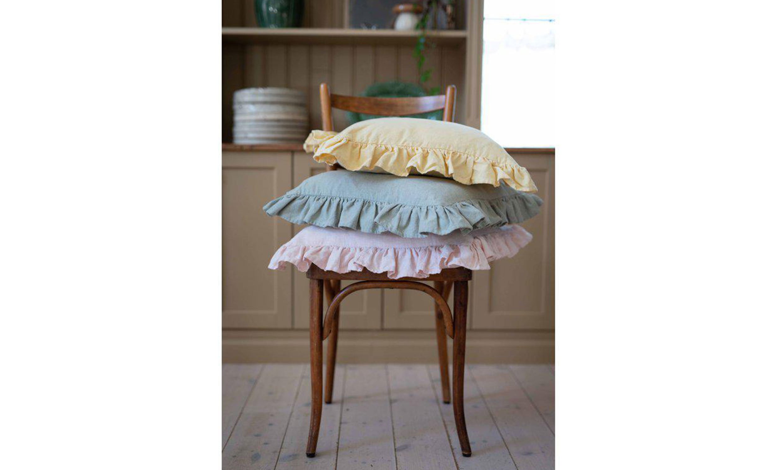 Vida är ett kuddfodral med dekorativ volang runtom som är tillverkat av återvunnen bomull och återvunnen polyester, vilket gör det till ett mer hållbart val för hemmet. Tygets struktur har en linnekänsla som ger ett naturligt och tidlöst uttryck som passar i många olika inredningsstilar.