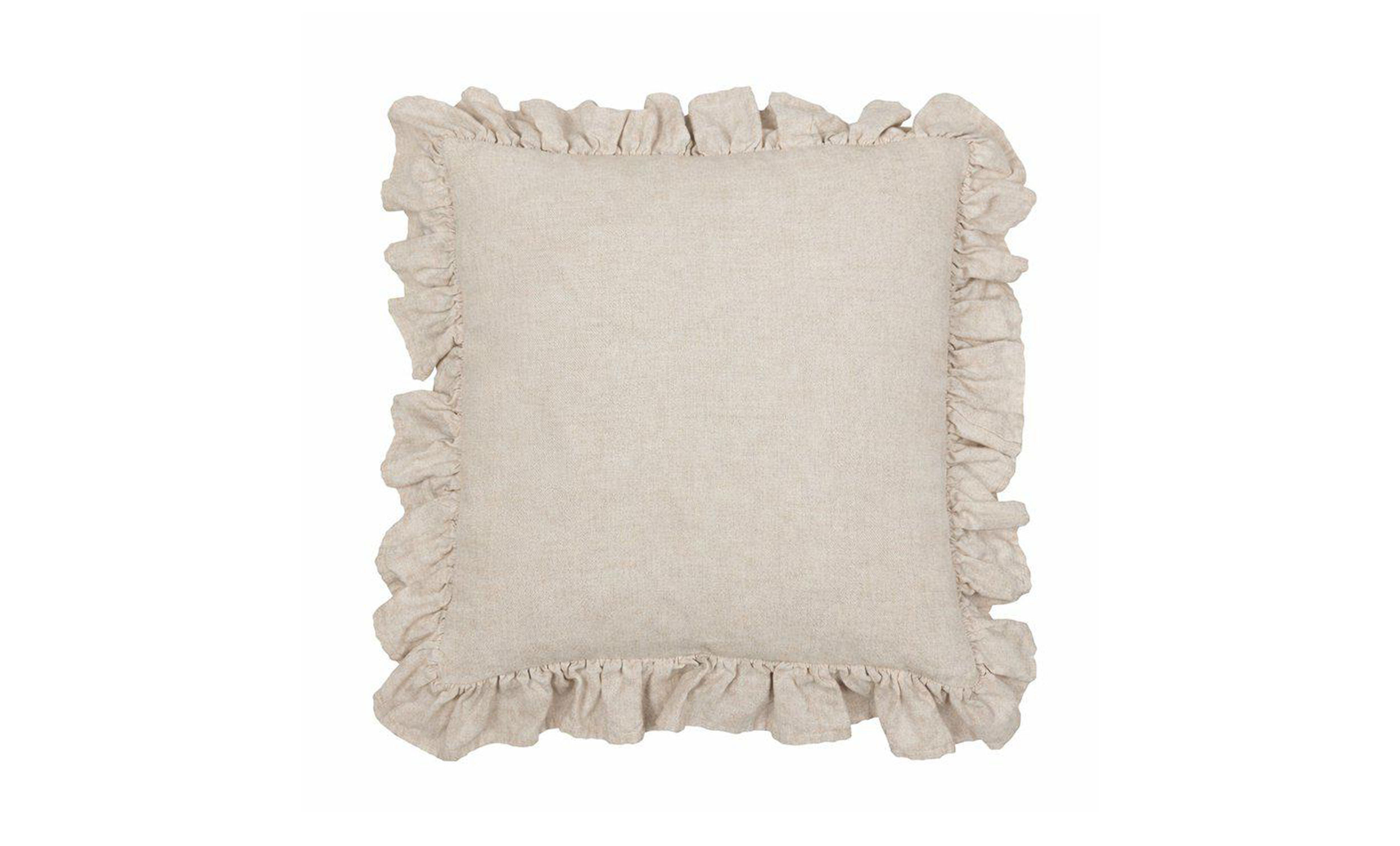 Vida är ett kuddfodral med dekorativ volang runtom som är tillverkat av återvunnen bomull och återvunnen polyester, vilket gör det till ett mer hållbart val för hemmet. Tygets struktur har en linnekänsla som ger ett naturligt och tidlöst uttryck som passar i många olika inredningsstilar.