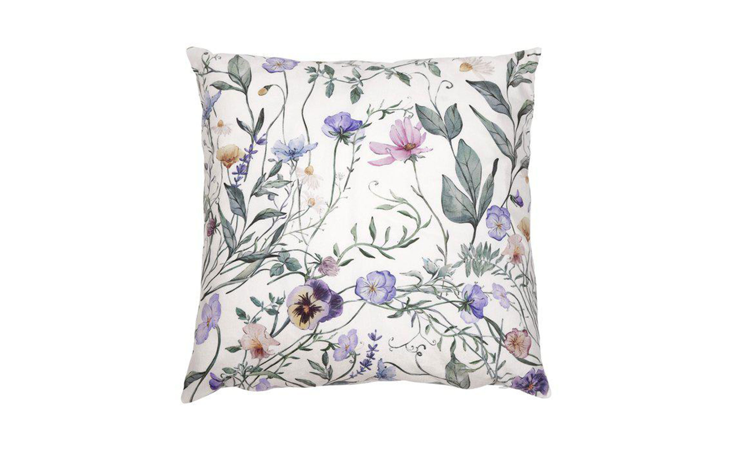 Vivvi är ett kuddfodral som är tillverkad i mjuk och fin sammet och pryds av ett elegant blommönster med violer som ger en romantisk och klassisk känsla. Den lena ytan i kombination med det dekorativa mönstret skapar ett stilfullt och inbjudande uttryck. Kuddfodralet är liksidigt, vilket innebär att mönstret och materialet är lika vackra på båda sidor, och passar perfekt i både soffan och sängen.