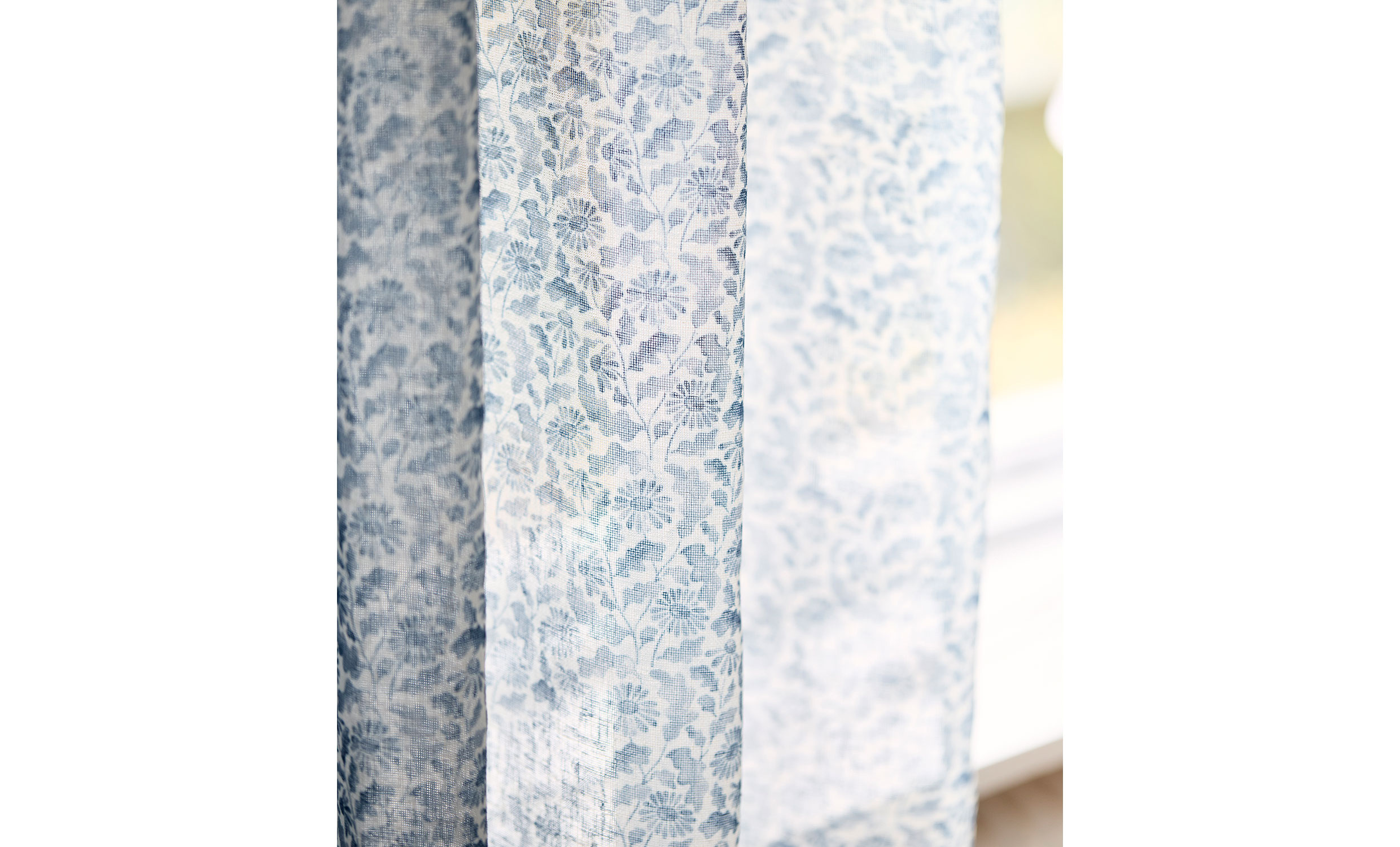 Yrsa är ett elegant gardinset i 2-pack är tillverkat i en tunn och skir kvalitet som filtrerar ljuset på ett mjukt och harmoniskt sätt. Det tryckta mönstret ger ett dekorativt uttryck samtidigt som rummet behåller en luftig och ljus känsla. Gardinerna har multiband upptill, vilket gör det enkelt att variera upphängningen – använd krokar för en klassisk veckad look eller trä gardinen direkt på stången för ett mer avslappnat fall. Med fålltejp kan du dessutom enkelt anpassa längden efter behov.
